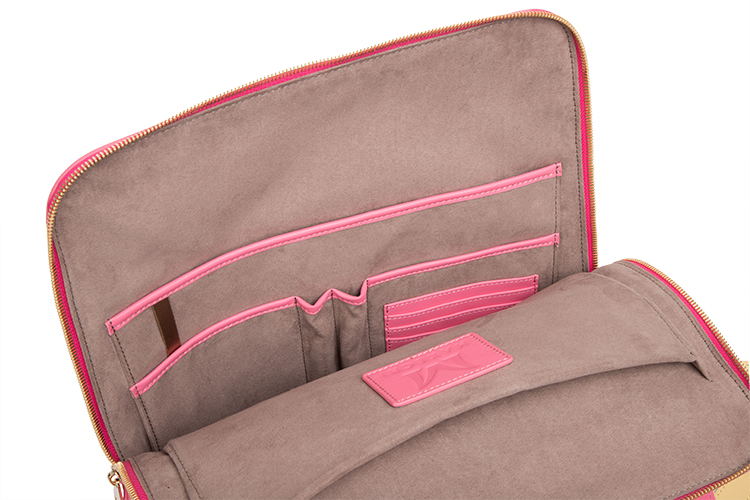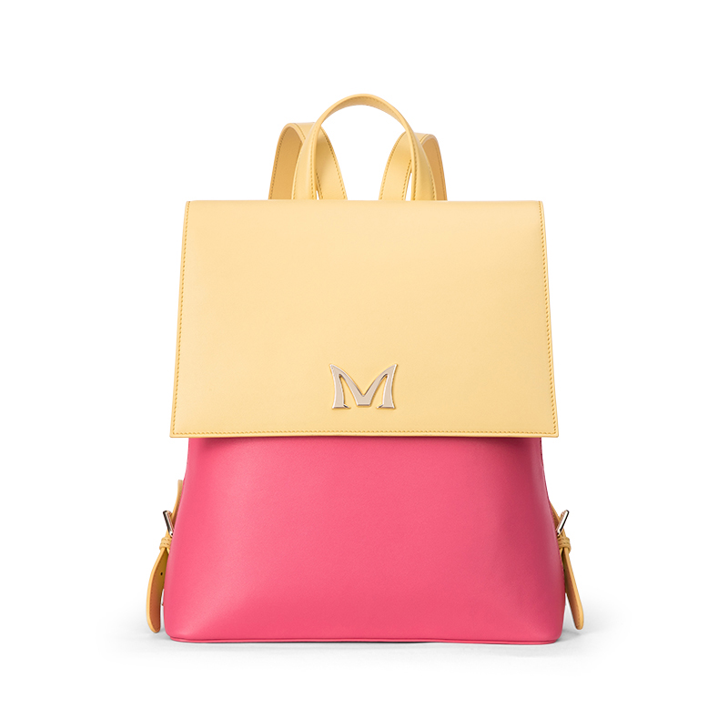 This softer backpack style, made of supple nappa leather, is a new closet staple. It has contrasting pink and yellow to instantly elevate any look. And inside you will easily find your purse, phone or cards in separate small pockets.
