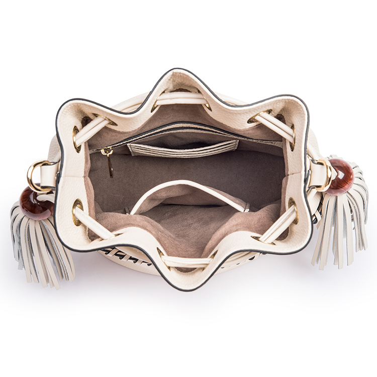 The hand-woven handle and tassels are eye-catching, coupled with acrylic balls embellishment, make the design of this bag even more special